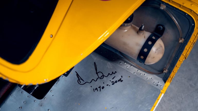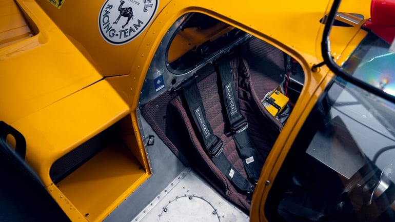 Further, it’s one of just 15 later converted to ‘modificato’ or M spec, with power pumped up to 610 horsepower from its 5.0-liter V12 and with lower, more aerodynamic bodywork. It’s also the only one finished in Francorchamps yellow. That, and the fact that it’s been raced by Ferrari legends like Derek Bell with certification from Ferrari Classiche, make its estimated $9-12 million selling price worth it for the right collector.
